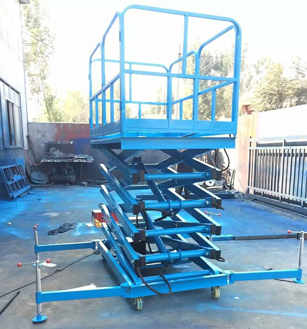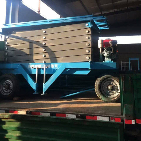 移動剪叉式升降平臺主要技術特點:臺面鋼板折彎、底架及剪叉結構山鋼定做高強度矩形管材; 標準冷彎槽做道軌,使用尼龍滑塊做導軌輪,接觸面大,升降平穩,晃動小;液壓油缸 內置防爆閥(防止油管斷裂,平臺失速下降),采用進口密封圈,經久耐用,不泄露;雙層鋼網高壓油管;升降機專用液壓泵站,加裝應急下降閥,平臺斷電可手動控制 下降,內置溢流閥,可防止上行運動時系統壓力過高,起到超載保護功能;充氣橡膠輪胎;電路電器、接觸器羅列連接,加裝熱過載保護,缺相保護等安全保護功能;電動上、下電動控制,控制按鈕盒加裝急停按鈕,以最大限度保障財產及人身安全,各操作部分使用24V安全控制電壓;軸銷圓鋼配做,調質處理;拋丸、噴砂 除銹處理,除去鋼結構構件表面的銹蝕及焊接飛濺,能使鋼構件表面產生一定程度的凹凸不平的效果,增大粉末的附著力;使用靜電粉末噴涂;涂層外觀質量優異,附著力及機械強度強,色澤亮度高,經久不褪色。