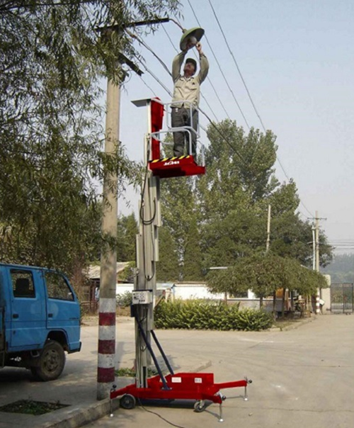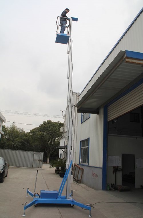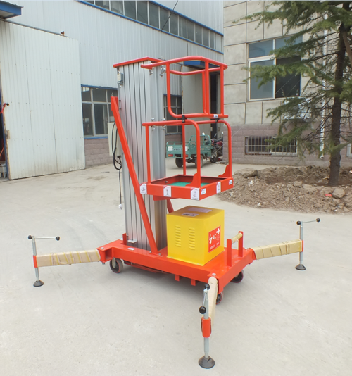 鋁合金升降機升高高度在8米以下為單跪柱式,在10米到14米之間為雙跪柱式,15米到18米之間則升為三跪柱式或四跪柱式。通過升降平臺跪柱的增加達到設備在高空的穩定性,保證作業安全,減小設備晃動的幅度,使高空作業更加平穩。鋁合金式液壓升降平臺下降速度可自調,而且設備設有手動下降裝置,保證在停電時的正常工作;設有應急停運按鈕;臺面設有防滑絕緣扣板,更換方便,易于清潔,維修方便,有效保障工作安全可靠,保證使用人員的安全。外形美觀,整體輕盈,能在小的空間內發揮好的舉升功能,也可根據客戶要求加裝蓄電池以滿足客戶工作場地的不同要求。