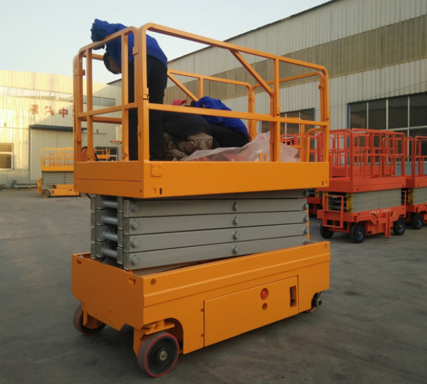 自行剪叉式升降機具有自動行走功能,整機一體式設計,內置電瓶電源,滿足在不同工作狀態下,不需外接電源,不需外來動力牽引即可升降自如,而設備的行走轉向也只需一人便可完成。操作人員只需掌握好設備前的控制手柄即可完成設備前進、后退、轉向、快、慢速行走和上下等動作。自行剪叉式升降平臺移動靈活,操作方便、省工、省力令高空作業更方便快捷,是現代企業高效安全生產之理想高空作業設備。