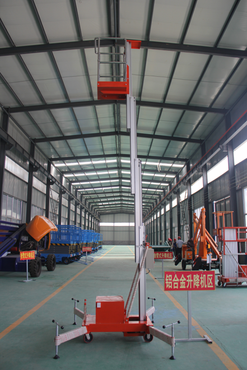 鋁合金升降機系列產品為多為室內型,廣泛適用于星級酒店,大型超市等各行業大廳、廠房內的高空作業,具有升降平衡,操作方便,能進入一般門廳,可隨意進出電梯且耗電少、無污染、工作時不傷地面,可用于貼墻工作及探出作業,工作無死角。鋁合金式液壓升降平臺產品采用鋁合金材料,動力經過液壓泵站帶動鏈條傳動,結構合理設計緊湊。鋁合金升降作業平臺根據升高高度分為單柱、雙住、三柱和四柱式,具有造型美觀、體積小、重量輕、升降平穩等優點,并能夠上下操作,升降平臺廣泛用于酒店賓館、車站候車室、機場候機樓、影劇院、展覽館、體育館等場所,是保養機具、油漆裝修、調換燈具、電器、清潔保養等用途的伴侶。