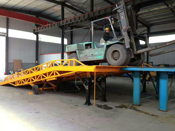 移動式液壓登車橋產品采用人工液壓動力,不需外接動力電源,只需單人操作,就可以實現貨物的安全快速裝卸,節省時間和人力資源。它可使企業減少大量勞動力,成倍提高裝卸作業效率,加快貨物流通速度,獲取更大經濟效益。移動登車橋被廣泛應用于無裝卸設備的貨臺及流動裝卸場所,是與叉車配合使用的貨物裝卸輔助設備。并可以根據不同的車型及裝車過程車廂的高度變化進行調節。廣泛應用于大型化工工廠運輸備料、物流集散中心運輸貨物、港口碼頭上下集裝箱,移動式液壓登車橋廣泛的應用各種物流或者工礦企業的裝卸貨物的工作當中。
