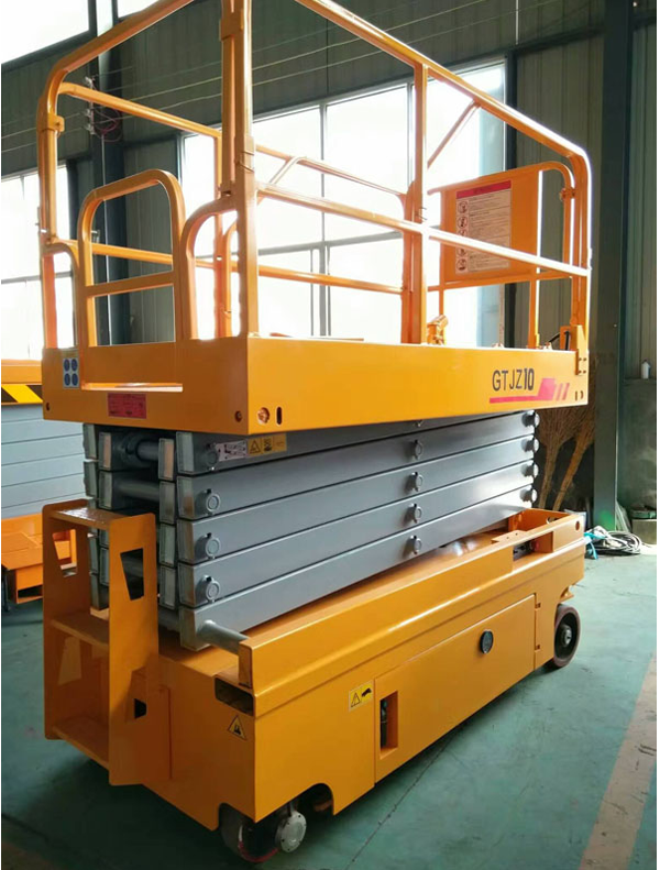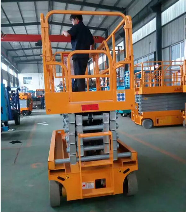 自行剪叉式升降機具有自動行走功能,整機一體式設計,內置電瓶電源,滿足在不同工作狀態下,不需外接電源,不需外來動力牽引即可升降自如,而設備的行走轉向也只需一人便可完成。操作人員只需掌握好設備前的控制手柄即可完成設備前進、后退、轉向、快、慢速行走和上下等動作。自行剪叉式升降平臺移動靈活,操作方便、省工、省力令高空作業更方便快捷,是現代企業高效安全生產之理想高空作業設備。